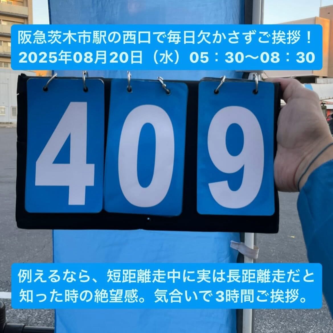阪急茨木市駅にて409日連続のご挨拶