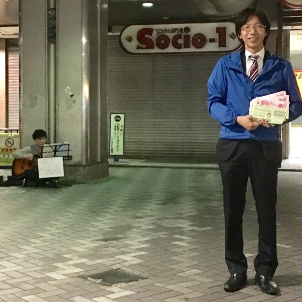 勤務後、京都市内在住の母とともに、矢島ひでかず後援会連絡所の看板を設置していただいている「創作呑喰癒空間まる」さんへ。定…